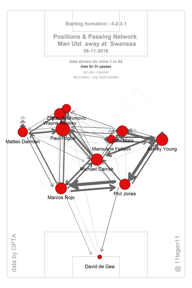 Интересно отметить, что данная схема, помимо прекрасной почвы для отличной игры Поля Погба, в некоторой степени повлияла на игру Уэйна Руни, который вряд ли до этого матча слышал хорошего слова в свой адрес в этом сезоне. Капитан, который с некоторых пор постоянно доставляет массу неудобств «Суонси», выдал просто-таки выдающийся матч на фоне своих недавних выступлений.