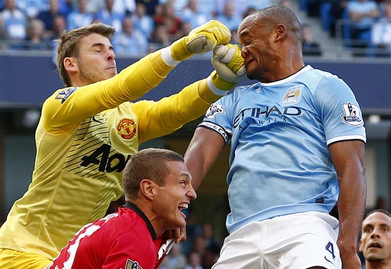 В сентябре 2013 года «горожане» нанесли еще одно чувствительное поражение «дьяволам», на этот раз после финального свистка на табло горели цифры 4-1. Однако кое-что радостное для нас в том матче все же стоит выделить, а именно момент на фото. Дубль оформил Агуэро, также отличились Туре и Насри. Голом престижа отметился Уэйн Руни, слегка подсластив пилюлю.