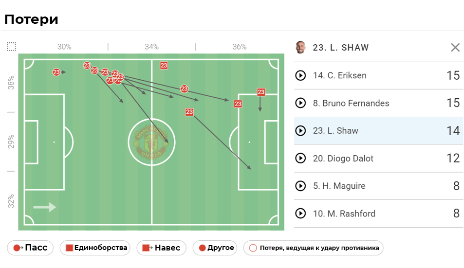 В этом сезоне Шоу провел на поле за «Юнайтед» 140 минут. В перерыве второго матча в АПЛ он был заменен из-за плохой игры – временами англичанин был нерешителен и терял мяч: против «Брентфорда» 14 раз, 13 – из-за неточной передачи; против «Брайтона» – 9.