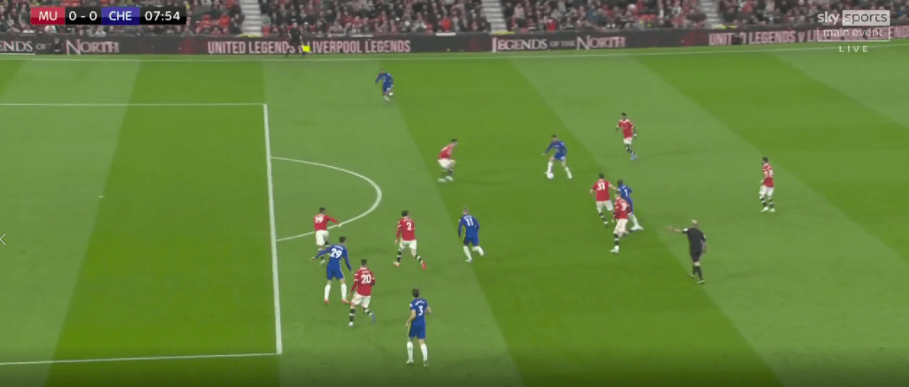 И сразу следующий момент, когда Маунт отрывается от Теллеса, которому приходится двигаться с ним, так как помощи по флангу никакой, и принимает мяч ровно в том месте, где должен был быть Маркус, даже пытавшийся сделать ускорение. Семенящее, крайне слабое, но ускорение. Вот только Мэйсон уже знал, что отдаст пас на Риса. Спасибо Рафе, который успел вернуться и накрыть удар.