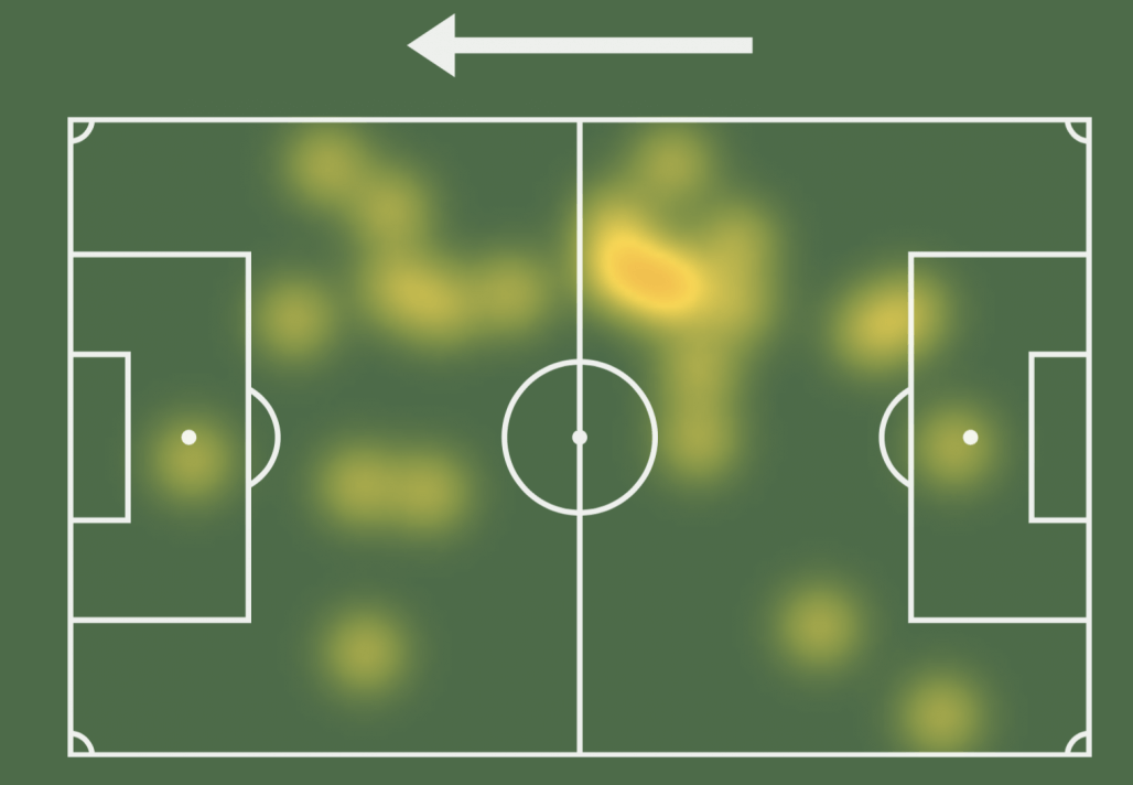 Ваут Вегорст, получивший изрядную долю критики, ее не заслужил. В матче против «Барселоны» нидерландский форвард вовсе не был форвардом – его функционал ограничивался физическим присутствием в центре поля, навязыванием борьбы, а также попытками подключения вторым темпом. На тепловой карте зафиксировано, что большую часть времени Вегорст провел во второй трети, лишь изредка продвигаясь вперед для подыгрыша.