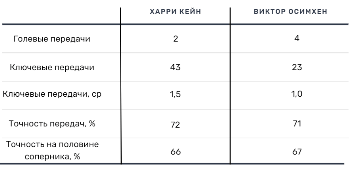 В таблице нас встречают впечатляющие цифры: казалось, что Харри уйдет далеко вперед по данным показателям от Виктора, ведь в предыдущих двух кампаниях Кейн стабильно отдавал 9 голевых передач за сезон, а об их дуэте с Соном слагали легенды.