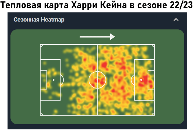 По тепловой карте можно понять, что Харри пошел по пути Уэйна Руни. Понимая, что с возрастом у него пропадают скоростные качества, которые и до этого не были на высоком уровне, Кейн стал спускаться ближе к центру поля, освобождая впереди место для более скоростных партнеров. Так он отдал уже 43 ключевые передачи за неполный сезон. Но одноклубников подводит реализация, из-за чего у англичанина всего два ассиста.