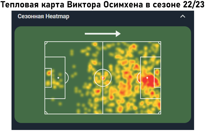 Упущенных голевых моментов у Осимхена в два раза больше. Ни для кого не секрет, что Харри – первоклассный нападающий, который может создать гол из ничего или оказаться в нужном месте в нужное время. Поэтому такой небольшой процент упущенных моментов никого не удивит. Но я бы не заострял на этом аспекте слишком много внимания: из него можно сделать и другой вывод. Большее количество упущенных моментов у нигерийца говорит о том, что он чаще предлагает себя партнерам по команде и находит пространство для создания этих моментов. Можно вспомнить того же Маркуса, у которого в прошлых сезонах на гол с выходов один на один уходило по 5 попыток. А сейчас он легко реализует подобные дуэли.