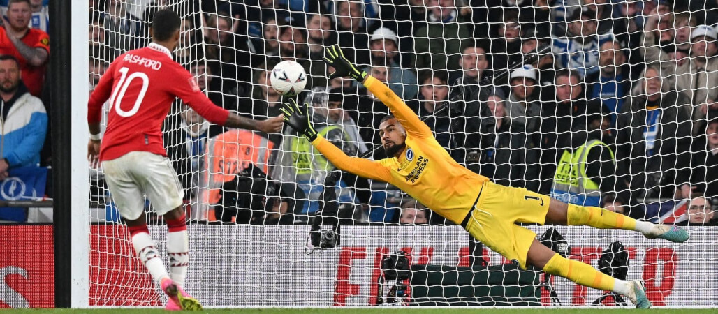 Равные нули привели к овертайму, где уже сильнее смотрелись подопечные тен Хага. Санчо сменил Марсьяля еще в основное время, Забитцер вышел уже на привычную для него позицию центрфорварда сразу после свистка, а на 101 минуте вышел Вегорст, который, наконец-то начал доставлять дискомфорт Уэбстеру и Данку. Де Хеа, ловя флешбеки из Севильи, часто не думая выбивал мяч вперед, но кому там бороться с двумя двухметровыми шпалами? Ваут же за 20 минут успел выиграть 4 единоборства из 6. Это совсем дезориентировало «Брайтон». Маркус опасно пробил с линии штрафной, затем все тот же Рэш смещался во фланг в центр с плотным ударом, а в самом конце игры Каземиро никто не встречал, и тот пробил метров с 25. Но со всем справился Санчес, отправив команды в серию пенальти.
