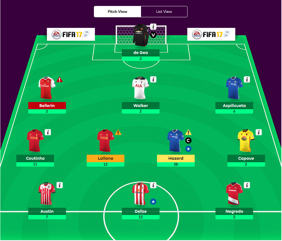 Достичь такого результата оказалось не так уж и сложно: стоило лишь доверить капитанскую повязку Эдену Азару, а заботливая система игры сама заменила травмированного Альдервейрельда на Чарли Остина, добавив в копилку команды еще 7 очков.