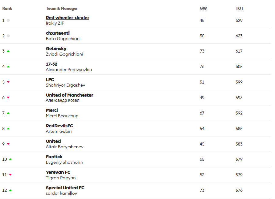 Для уже зарегистрированных в Fantasy мы указали коды для автоматического присоединения к лиге. Они указаны в скобках - просто нажимаете, и вы уже участник лиги!
