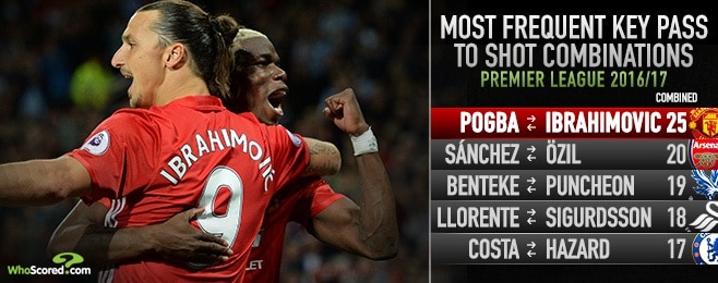 После неудачного старта сезона, в атаке «Юнайтед», наконец, появилась идеальная связка игроков. Звездные футболисты демонстрируют, что они не просто набрали хорошую форму. Погба создал 14 голевых моментов для Ибрагимовича, а тот ответил взаимностью, создав 11 для полузащитника. Это делает их наиболее продуктивным дуэтом в Премьер-лиге, с точки зрения возможностей, создаваемых друг для друга.