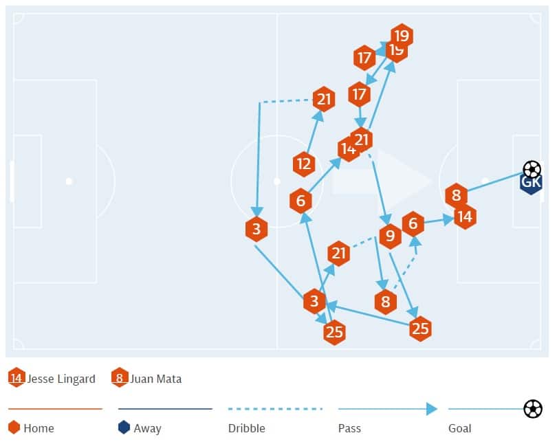 Розыгрыш перед голом Хуана Маты (37 минута).