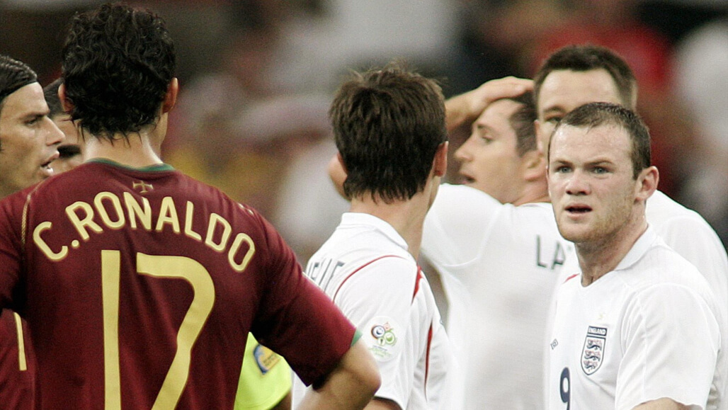 Главный же скандал в манчестерской карьере Рона произошел на ЧМ-2006 в четвертьфинале против Англии. В одном из эпизодов Руни в борьбе с Рикарду Карвалью жестко наступил ногой сопернику в область паха. Роналду начал просить для Уэйна красной карточки, а когда рефери ее показал, Криш подмигнул скамейке сборной Португалии. Эта выходка сильно разозлила болельщиков и английские СМИ.