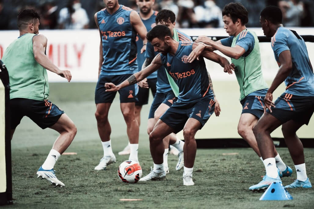 Поскольку Эриксен и де Йонг еще не подписаны, полузащита «Юнайтед» скоро подвергнется серьезной модернизации, но было интересно, что тен Хаг на тренировке эффективно использовал два восьмых номера – Фернандеша и ван де Бека, а сзади Фред выступал в роли якоря полузащиты. Скотт Мактоминей отсутствовал из-за небольшого ушиба.