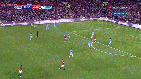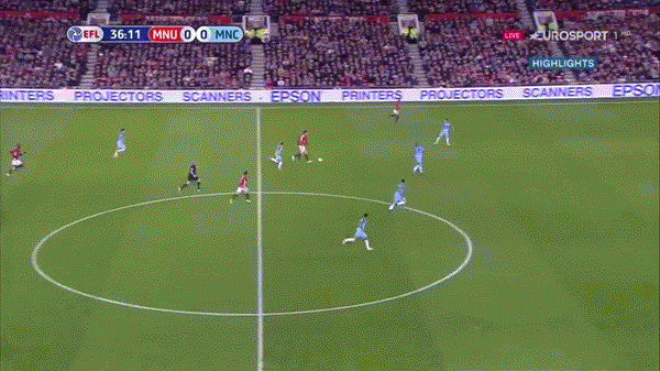 Хороший контрпрессинг. После потери мяча МЮ максимально быстро включался в прессинг на чужой половине и мешал «Сити» разогнать контратаку. Если замедлить не получалось, игроки использовали тактику мелкого фола. Это то, что не получилось у «Юнайтед» полтора месяца назад в матче АПЛ.