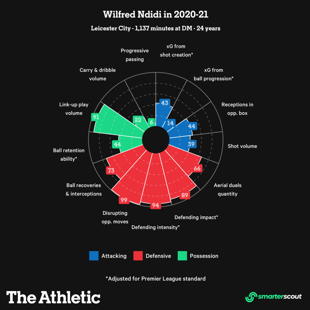 Спад «Лестера», последовавший сразу после возобновления чемпионата в прошлом сезоне, произошел во многом из-за травмы Ндиди. Он способен успешно выступать в опорной зоне как в паре, так и в одиночку. Цитируя Иана Райта: «Юнайтед» следует приобрести не только Ндиди, но и его потенциальную замену в «Лестере», а еще скаутов, которые сумели первыми отыскать нигерийца». Настолько он хорош.
