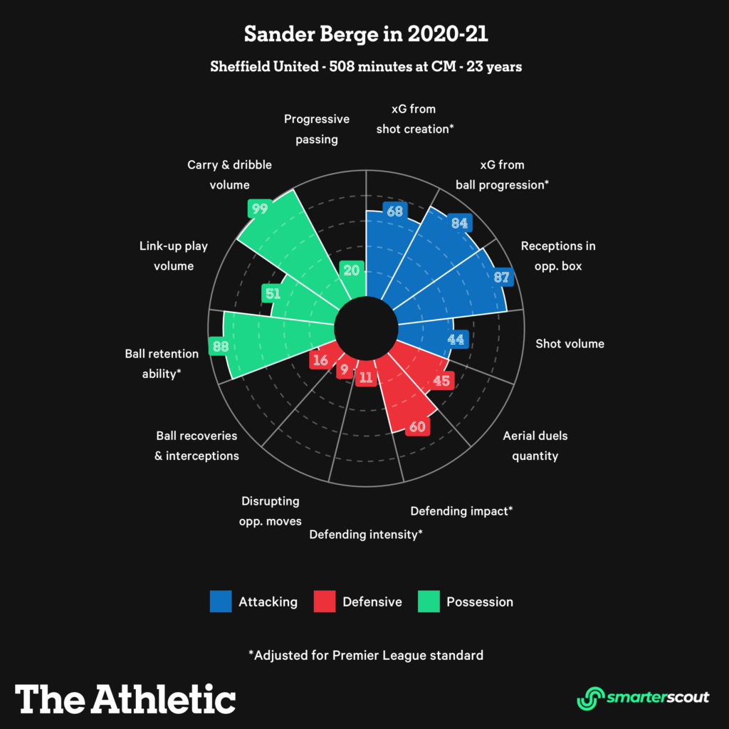 И последний игрок в сегодняшнем списке – опорный полузащитник «Шеффилд Юнайтед» Сандер Берге. Суматоха, вызванная пандемией COVID-19, затормозила процесс адаптации Берге к Премьер-лиге, но если говорить о нем в целом, то норвежец – высокий (195 см) и габаритный (96 кг) опорник с отличными навыками в отборе, продвижении и сохранении мяча, а также здорово помогающий при позиционном нападении. Если его правильно использовать, Берге имеет потенциал выйти на уровень пикового Матича. Тем более, Сандеру всего 23 года, есть время для прогресса.