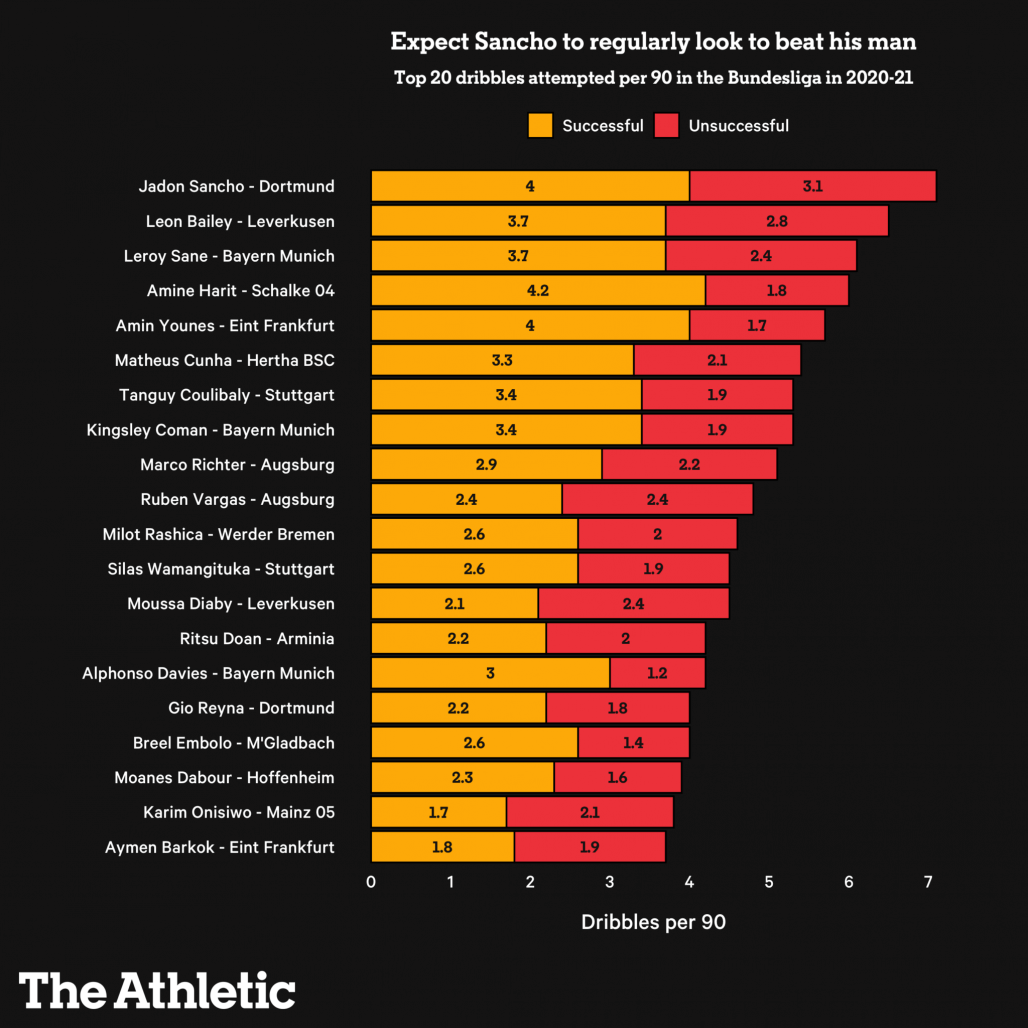 Даже при 50% успешных обводок, риск можно считать оправданным. Каждый раз, когда Санчо обыгрывает соперника, выходит опасная атака. «Это игрок мирового уровня, который становится лучше с каждым днем», – с сожалением писал один из членов тренерского штаба «Боруссии».