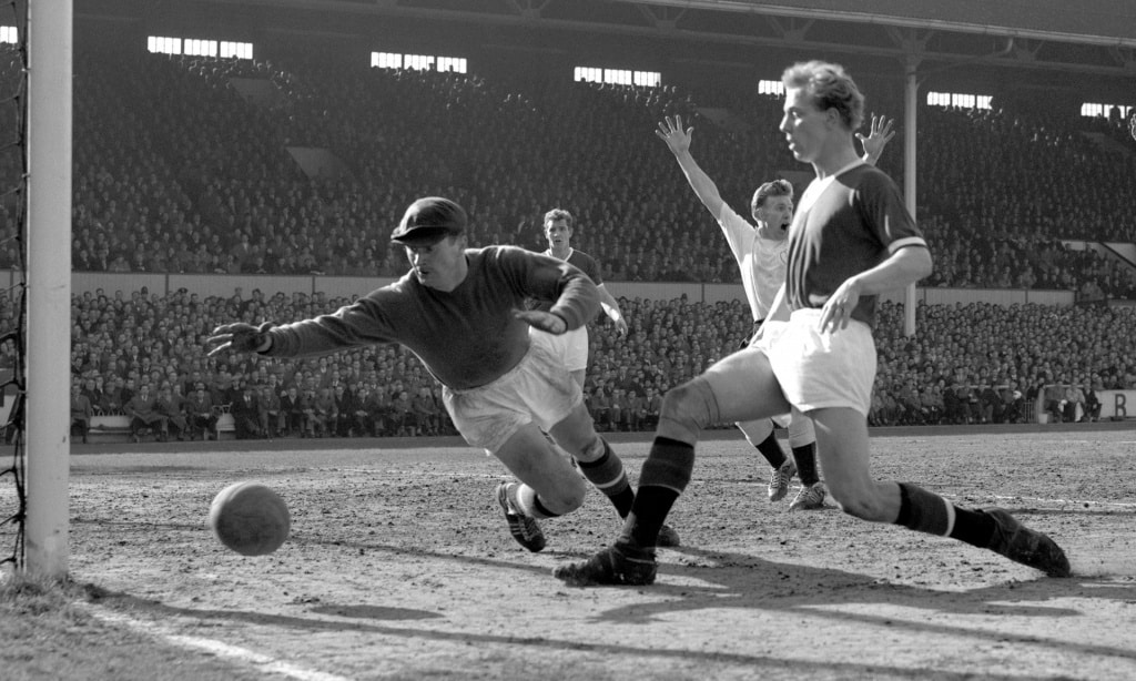 Гарри Грегг защищает ворота «Манчестер Юнайтед» в матче против «Тоттенхэма» в 1958 году.