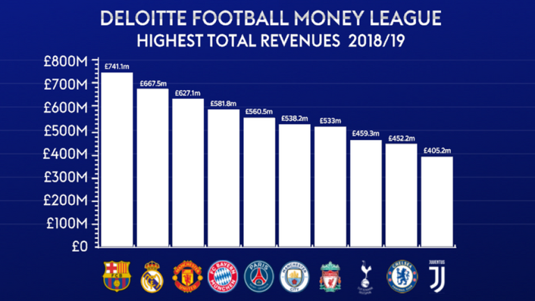 С доходами в размере 627.1 миллиона фунтов за сезон 2018/19 «Юнайтед» занял третье место в списке Money League, уступив только испанским гигантам «Барселоне» (£741.1 млн) и «Реалу» (£667.5 млн).