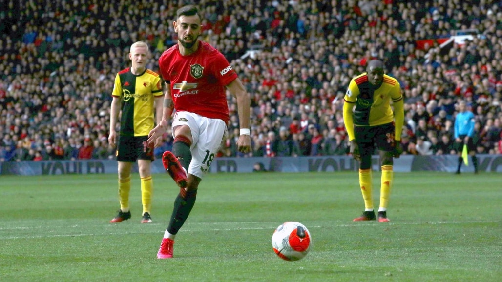 Бруну Фернандеш открыл счет в матче с «шершнями», реализовав пенальти перед перерывом, а голы Антони Марсьяля и Мейсона Гринвуда увеличили преимущество «красных дьяволов» до 3-0.