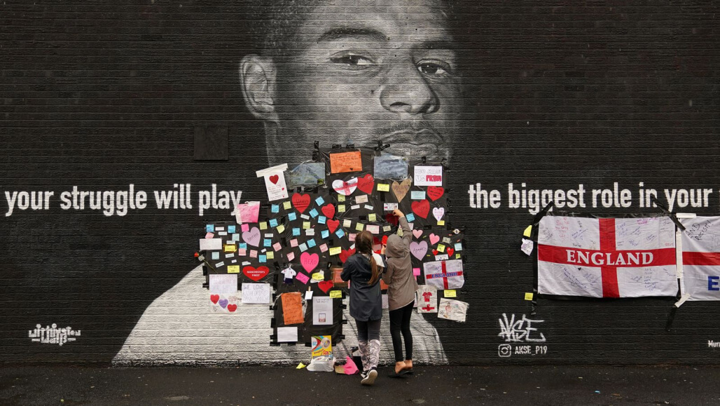 Помимо того, что на Рэшфорда обрушился поток расистских оскорблений, кто-то испортил изображение англичанина на стене здания в его родном пригороде Манчестера.