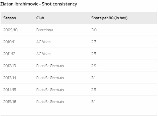 «Если вы хотите выбрать какой-нибудь компонент для сравнения выступлений форварда из года в год, это должно быть именно среднее количество ударов в створ противника на протяжении 90 минут» - говорит Бен Пагсли, сотрудник Statsbomb.